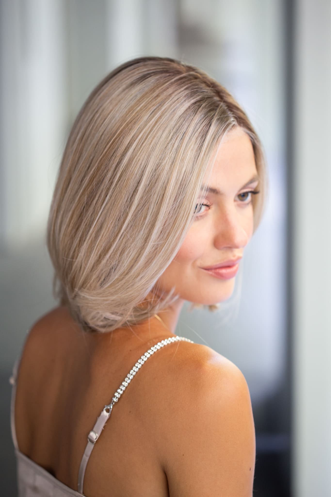 Soft bob style with flattering face framing layers and very light weight. Her lace front enables off the face styling and the Techno Fibre ensures multiple styling options with the heat tolerance.